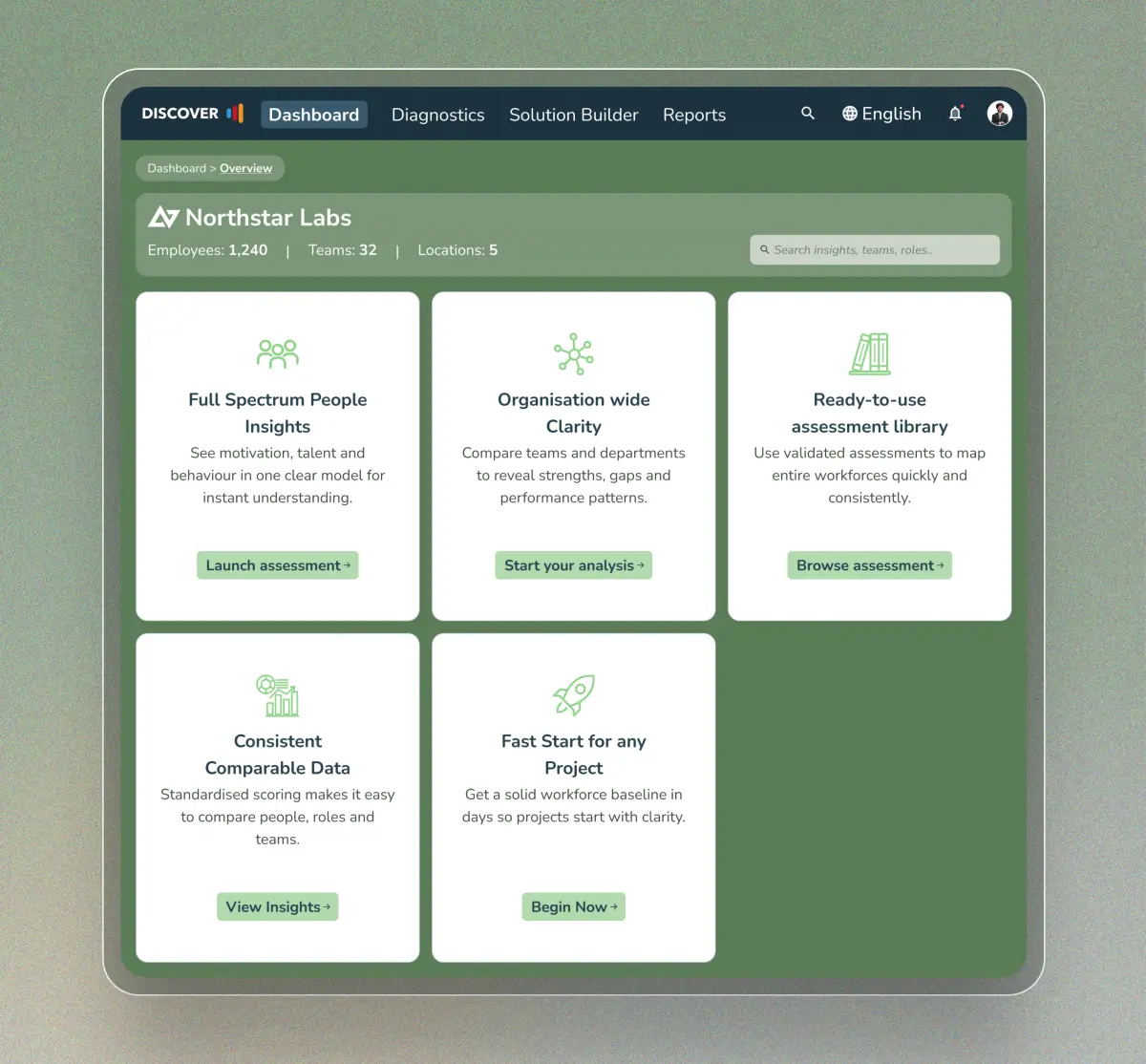 Everything you need to map DISCOVER Motivators, DISCOVER Talents and DISCOVER Behaviour — faster, deeper, and across the organisation.