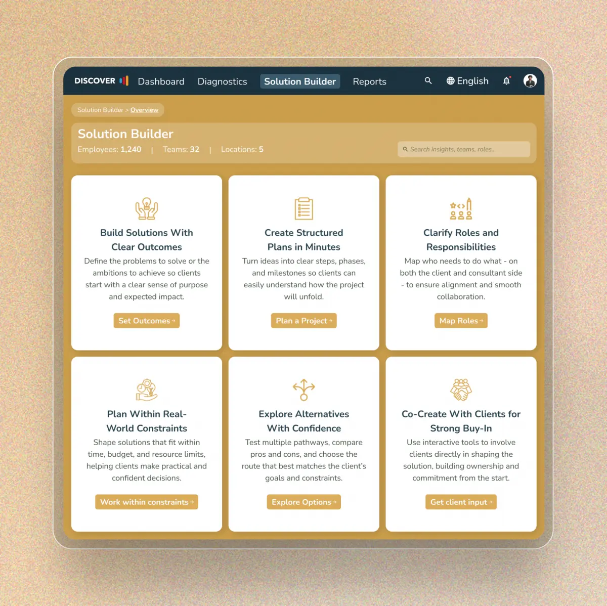 Design tailored programmes clients understand, commit to, and execute — from quick diagnostics to transformation journeys.