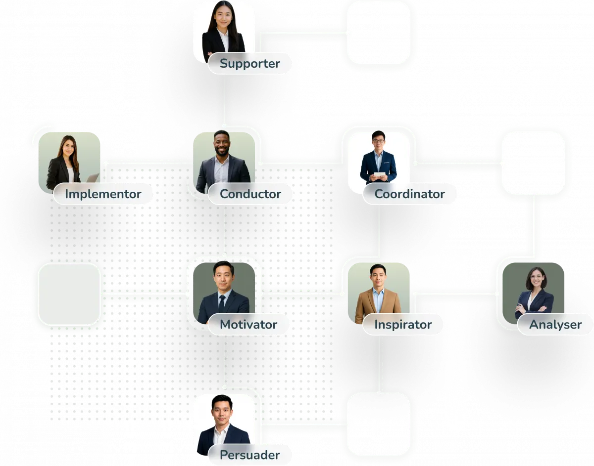 - Communication patterns – see where styles naturally align and where friction or blind spots may appear.