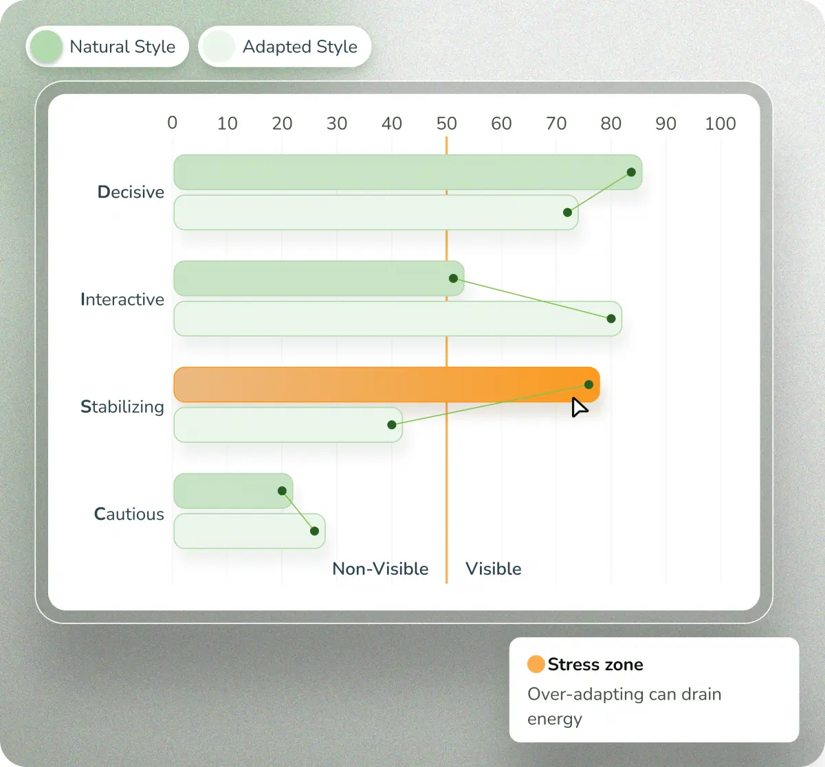 Including the variance between natural and adapted styles and how they behave in comfort, stretch or stress zones.
