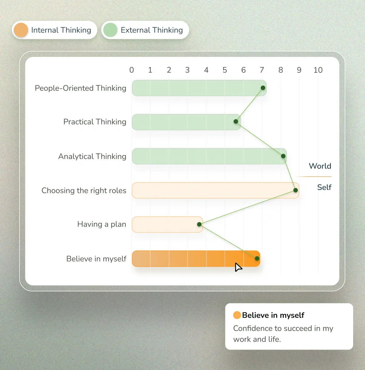 - Internal thinking: how people evaluate themselves, roles and potential